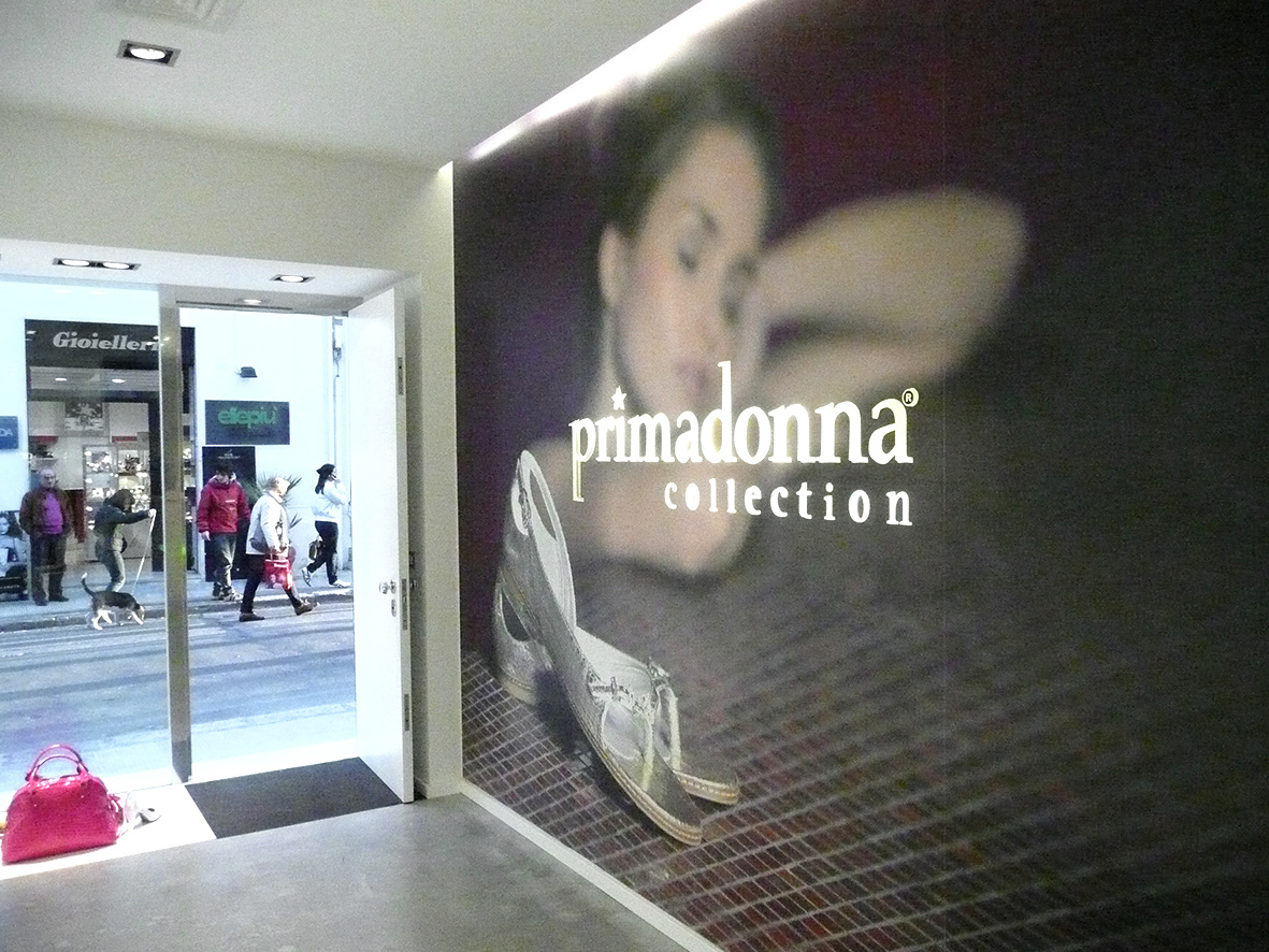Il progetto ha cercato di coniugare la semplicità del prodotto/contenuto (calzature da donna di fascia medio-bassa) con la necessità di comunicare qualità ed innovazione del punto vendita/contenitore. Si è cercato soprattutto di utilizzare al massimo lo spazio espositivo accettando la sfida di mediare le logiche comunemente impiegate nella produzione artigianale introducendole nella catena produttiva industriale. In soli due mesi viene creato un format testato nella prima apertura del punto vendita di via Sparano a Bari. In soli cinque anni il format PRIMADONNA Collection® è declinato in 170 punti vendita realizzati nel territorio italiano ed estero.